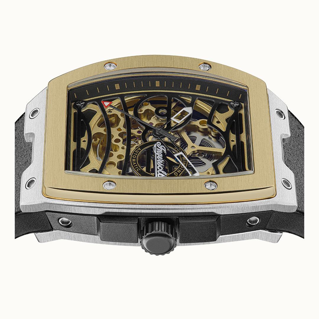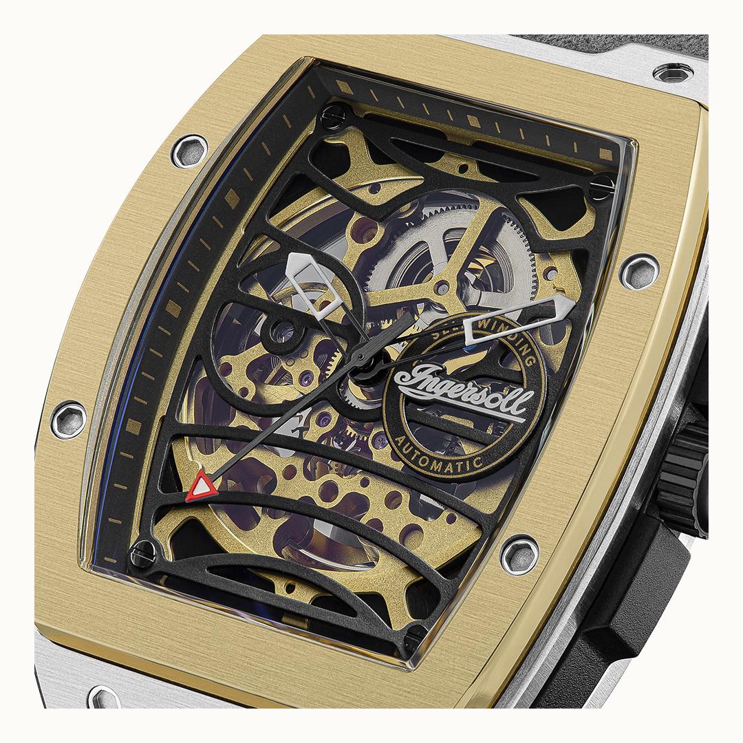 Ingersoll 1892 The Challenger Automatic Mens Watch with Black Dial and Black/Grey PU/Alcantara Strap - I12305
