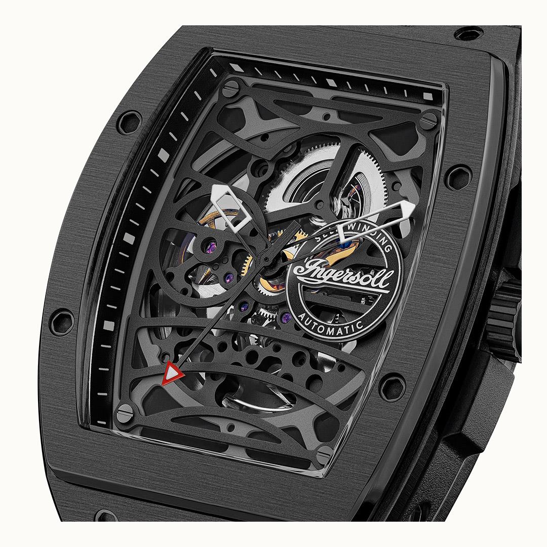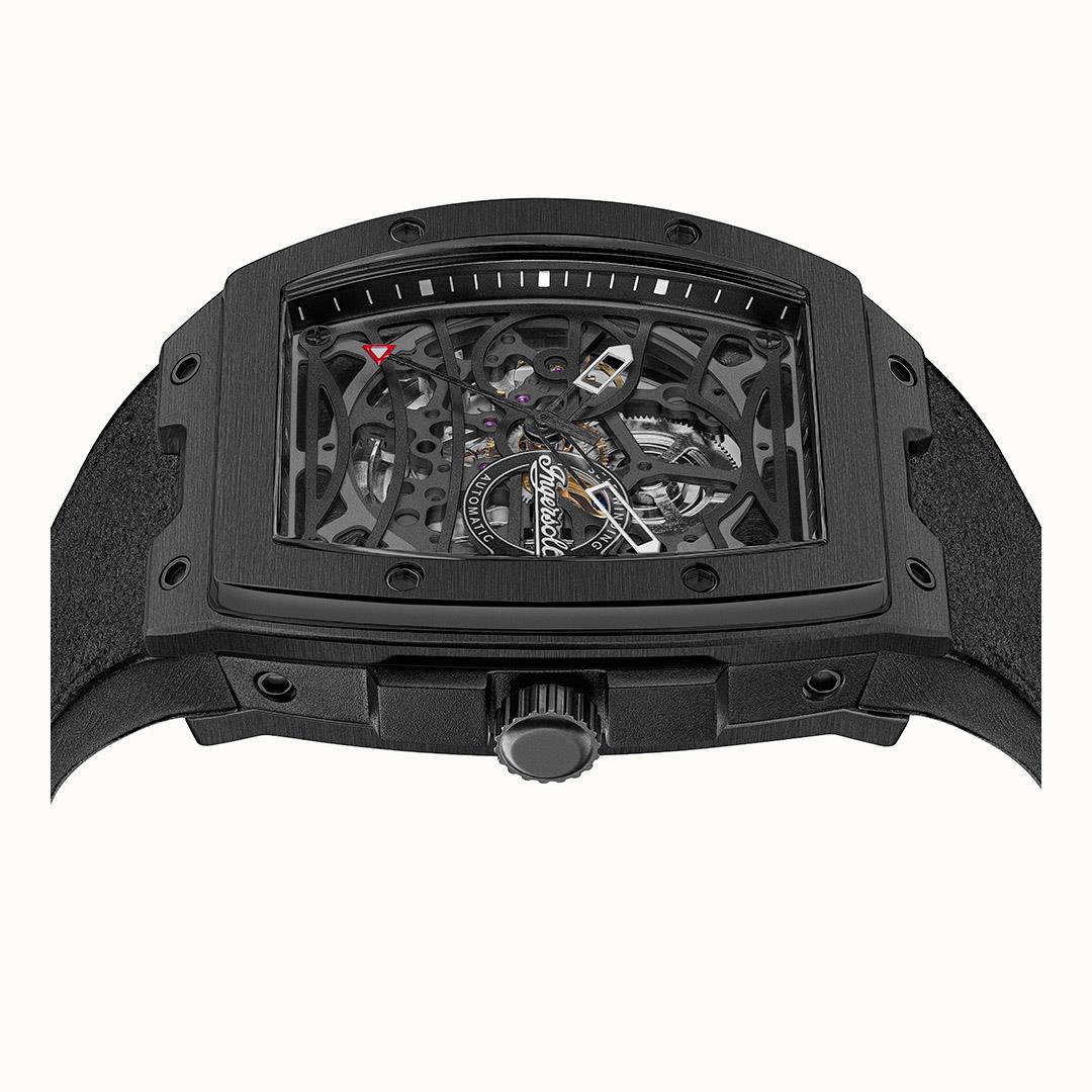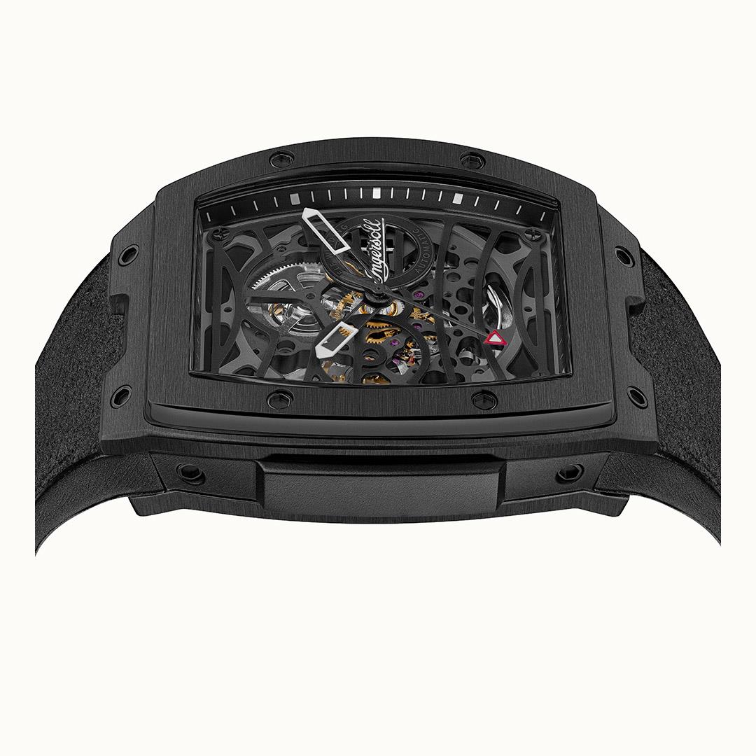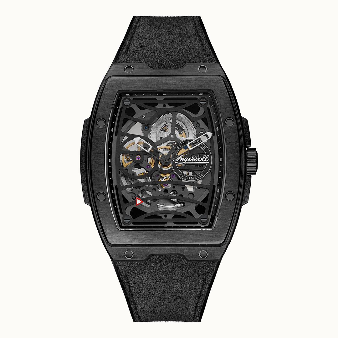 Ingersoll 1892 The Challenger Automatic Mens Watch with Black Dial and Black PU/Alcantara Strap - I12307